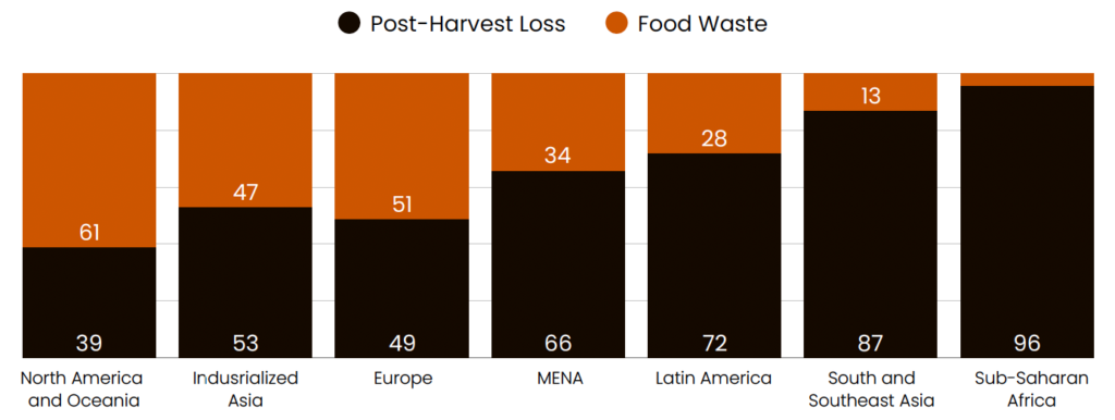 Fig 1: Post-Harvest Loss and Food Wastage by Region (% of Kcal lost and wasted), 2009
